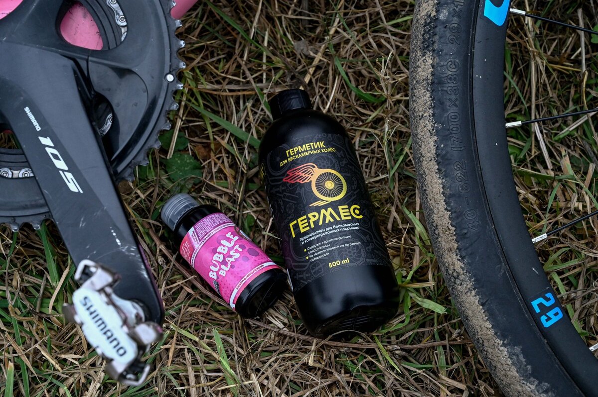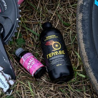 Гермес - герметик без которого бескамерное колесо не имеет смысла. Экологичный герметик от компании Prometey Bike Lab, с легкостью предотвратит порезы и проколы до 9 мм, можно использовать не только в тёплое время года, но и зимой с температурой до -18 градусов Цельсия. Экологичный состав на основе латекса легко смывается водой при обслуживании и замене герметика, герметик рекомендован к замене каждые 6 месяцев. Рекомендации к использованию герметика, достать сердечник клапана из ниппеля, установить покрышку на колесо и накачать до момента защелкивания покрышки на ободе в специальные замки, спустить воздух из покрышки и тщательно взболтать флакон с герметиком, ввести герметик в ниппель колеса с помощью шприца, либо специального инструмента для заправки герметика, установить сердечник клапана ниппеля и накачать колесо до рабочего давления, тщательно покрутить и потрясти колесо для равномерного распределения герметика по покрышке. Но лучше обратиться к мастерам и они с легкостью произведут ввод герметика в покрышку.